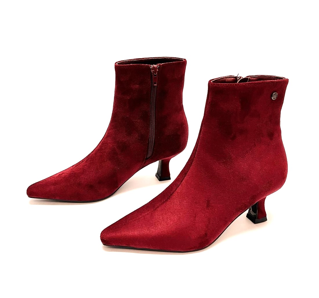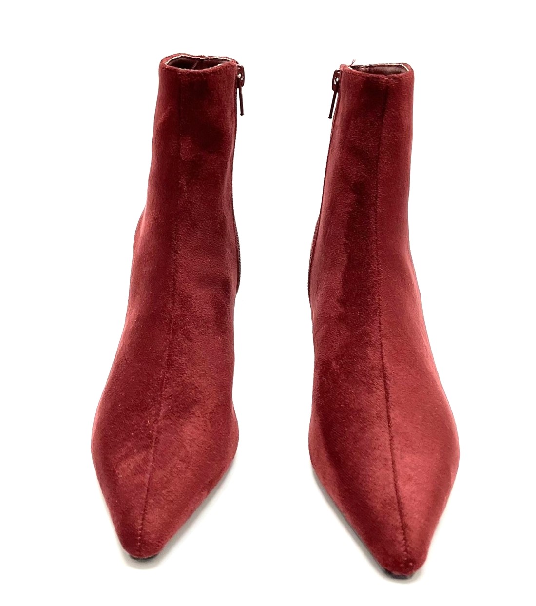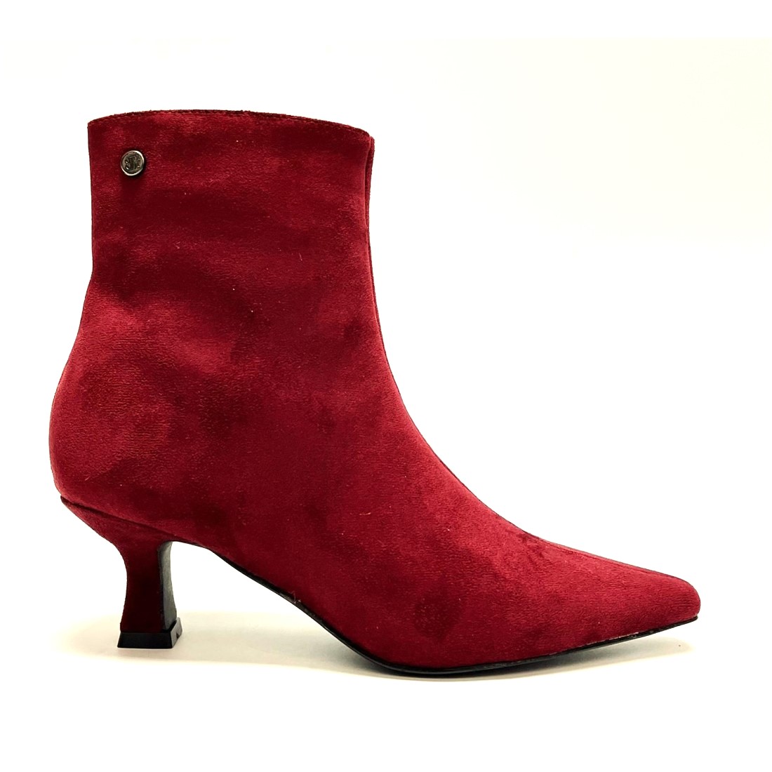 Botín de Mujer, Fabricado en Antelina de Color Burdeos. Cremallera lateral.