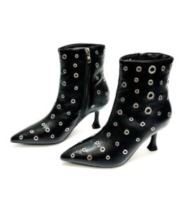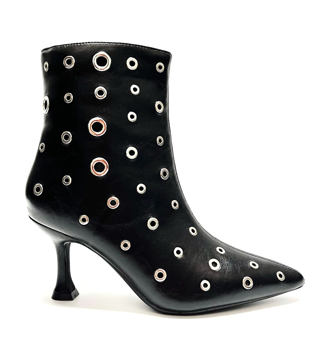 Botín Fabricado en Polipiel, Forro en tejido, Planta Acolchada y detalle de Ojetes y Ollaos en Metal de Color Níquel en La Pala y en la caña, Tacón 7 cm y la Caña 16cm, Cremallera Lateral.
